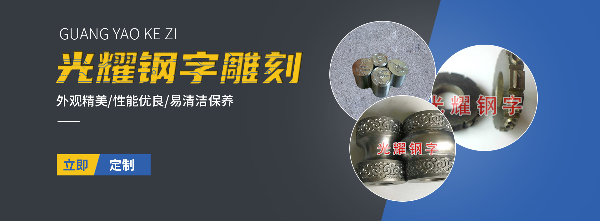 齊河縣光耀鋼字雕刻有限公司位于山東省齊河縣經濟開發區,地理位置,京福,濟邯,青銀高速,京滬鐵路慣穿全縣,距省會濟南20公里,交通便利。主要產品:焊工鋼印、鐵路鋼印、自行車檢驗鋼印、沖頭、用于機械、配件制造行業配套用的鋼字頭:如軸瓦、火花塞、活塞 、活塞環、油泵、油嘴、軸承、鏈條、鏈輪、自行車飛輪、卷煙廠、食品廠,以及棉花加工業、紡織、印染業、大型軋鋼廠、公路、通信線路用樁號警示牌等。主要生產材料:鐵板、銅板、鋁塑板、厚度0.2MM--0.5MM的漏板。
